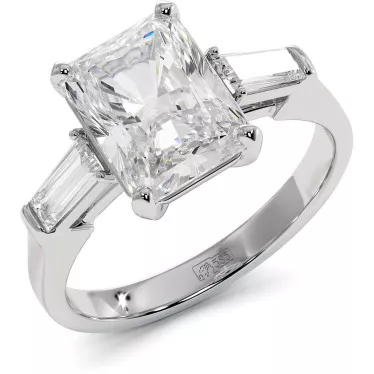 This stylish engagement ring features lab-grown diamond 1 carat emerald cut or radiant cut center stone accompanied by sparkling lab-grown diamond side stones (0.3 ctw) along the ring shank set in white, yellow or rose 18k gold.